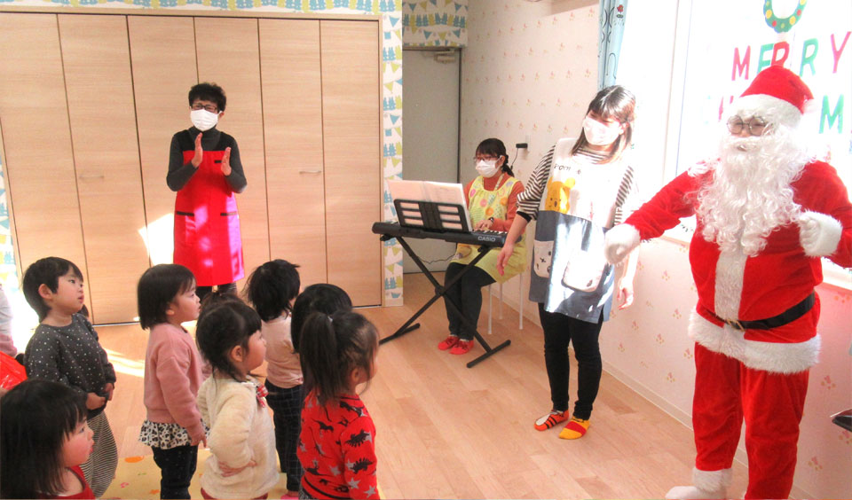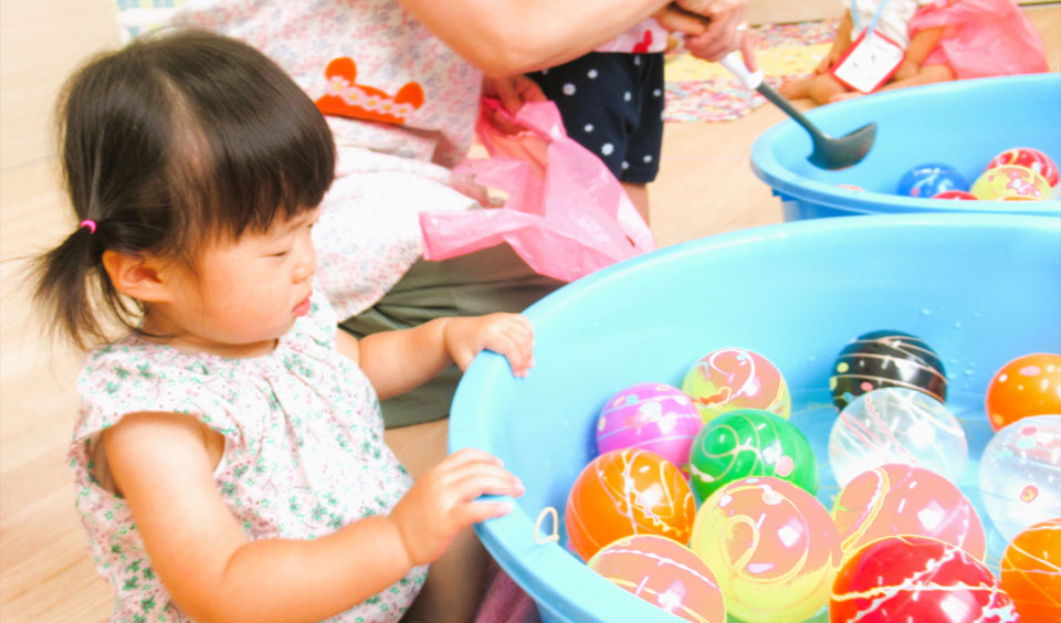 44名 いちご組(0歳)2名、もも組(1歳)7名、ばなな組(2歳)7名 さくら組(3歳、4歳、5歳)24名 ※1号認定4名 |
