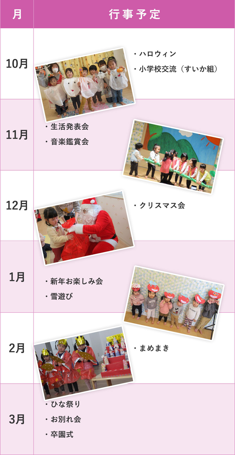 3、4、5歳児クラス~毎月 主食費¥1,500 副食費¥6,500を頂戴いたします。